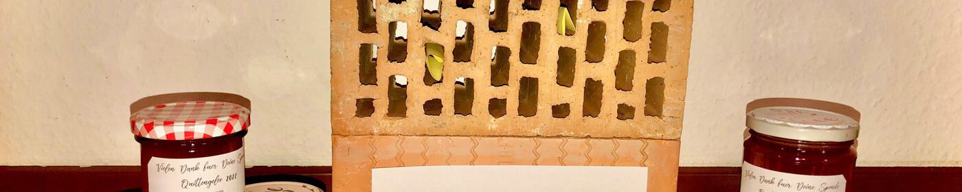 Doch was hat es mit dem Quittengelee auf sich??? Der Quittenbaum auf der Wiese hinter dem MarkusHaus hat dieses Jahr so viele Früchte getragen, dass wir daraus Gelee gekocht haben. Und für Spenden ab 10,-€ bzw. 50,-€ wollen wir uns bei den Spendern mit einem kleinen oder großen Gläschen Quittengelee bedanken!